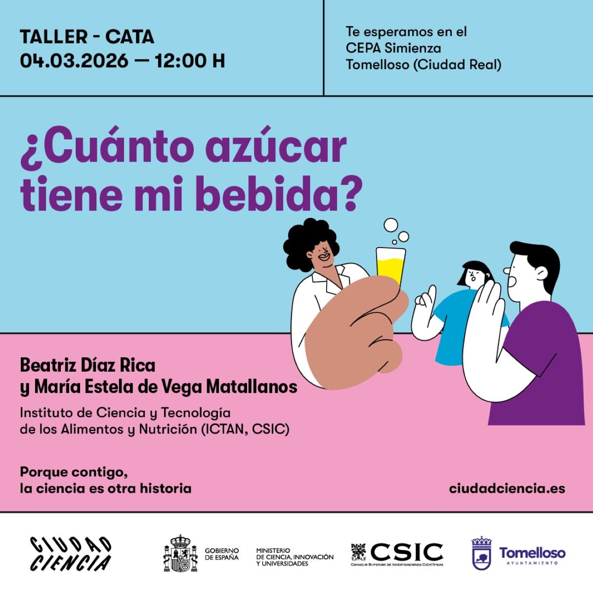 Tomelloso será escenario el próximo 4 de marzo del taller divulgativo ‘¿Cuánto azúcar tiene mi bebida?’, una actividad organizada por Ciudad Ciencia que invita a reflexionar sobre el consumo habitual de bebidas azucaradas, edulcoradas y energéticas, especialmente entre la población joven.