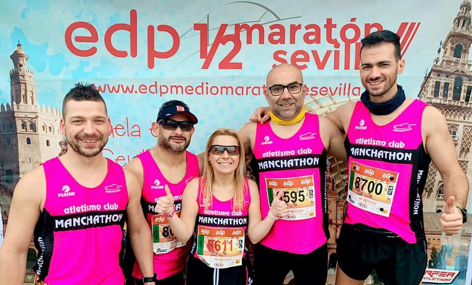 El Atletismo Club Manchathon se hace un hueco en varias Carreras Nacionales. Durante el pasado domingo, 5 miembros del club (Francisco José Bellido, Jacobo Córdoba, Nines y Alfonso Ortiz y Quique Coy) disputaban la EDP Media Maratón de Sevilla. Esta prueba cumplía sus «bodas de plata», ya que esta edición es la 25ª de la carrera. Según ha descrito el club a través de sus redes sociales, este evento deportivo se vivía con un gran ambiente en la ciudad y mucho público que se echó a las calles, pese al frío y la niebla, para acompañar a los cerca de 10.000 corredores inscritos en la 25 edición de la prueba y Primera Prueba del Circuito Nacional de Running Plátano de Canarias.