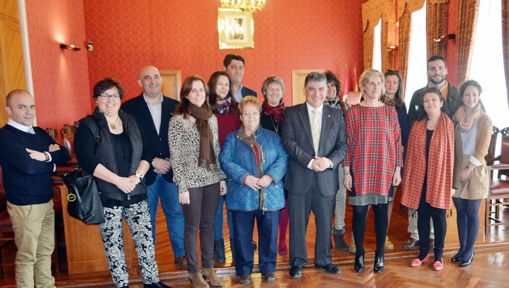 Una amplia representación de la nueva Junta Directiva de la Asociación de Empresarios de la Comarca de Tomelloso, encabezada por su presidenta, Esther Belló, ha sido recibida en el Salón de Plenos por el alcalde de Tomelloso, Carlos Cotillas y el Concejal de Promoción Económica Manuel Rodrigo.