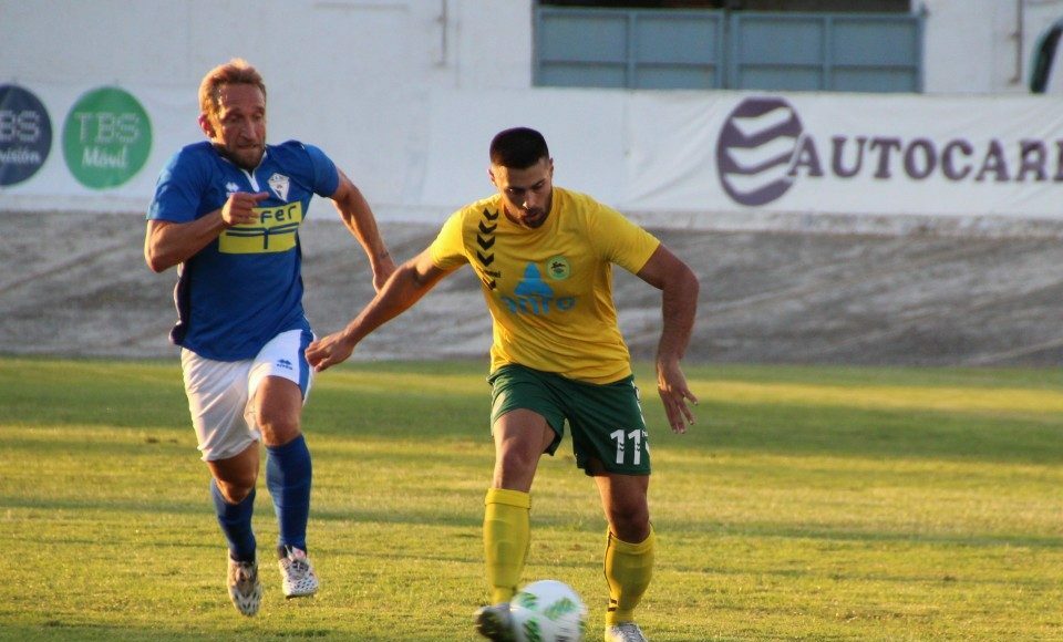 El inicio del partido fue lento, en parte por lo irregular de un “Paco Gálvez” que sigue sin presentar un estado adecuado para la práctica del fútbol. Las imprecisiones predominaban e imperaba el centrocampismo. Avisaba Gallego con un remate de cabeza que fue el preludio de una de las mejores ocasiones visitantes del partido, mano a mano de Ivanchu que rebañó contundente Joaquín. Fue el preludio a los mejores minutos de los visitantes sobre el césped, y también al primer (y a la postre, único) gol del partido, en un balón largo que pelea Gallego y, sólo en la esquina del área, cede para que Carlos Arroyo defina por bajo ante la salida del meta Sergio. Ese tanto animó a los locales, que llegaban al descanso con ventaja en el electrónico.
