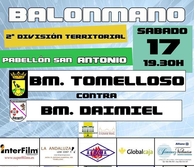 Después de una buena pretemporada, con victorias frente a Balonmano Calatrava, Madridejos, Villarrobledo y Amibal Toledo y una sola derrota por un gol en la pista de Villafranca, el equipo tomellosero se enfrenta al Balonmano Daimiel. Se trata de un rival muy serio un contra el que la escuadra tomellosera ha alternado victorias y derrotas en las últimas temporadas
