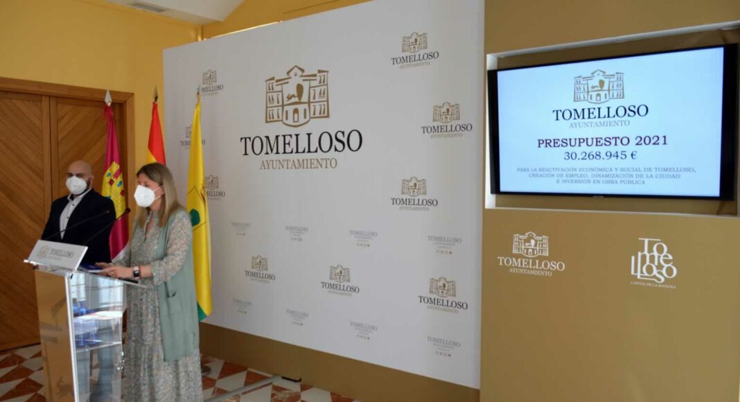 El equipo de gobierno del Ayuntamiento de Tomelloso presentará al pleno del próximo miércoles, 31 de marzo, un presupuesto municipal “ambicioso, responsable y realista para 2021”, que asciende a 30.268.945 de euros, lo que supone un incremento de algo más de 750.000 euros con respecto al del pasado ejercicio y que permitirá, “gracias a la buena gestión de las cuentas municipales”, la puesta en marcha de un potente Plan de Reactivación Económica y Social para Tomelloso, en el que ya está trabajando. Así lo han avanzado este viernes la alcaldesa de la ciudad, Inmaculada Jiménez y el concejal de Hacienda, Francisco José Barato, que han marcado como objetivos para 2021 “la reactivación económica y social de Tomelloso, la creación de empleo, la dinamización de la ciudad y la inversión en obra pública”.