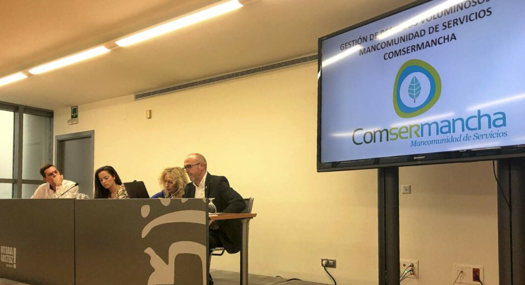 El presidente de la Mancomunidad de Servicios “Comsermancha”, Pedro Ángel Jiménez, viajó a finales de septiembre, junto al gerente de la Mancomunidad, Antonio Martínez, a Vitoria-Gasteiz, para participar en calidad de ponente en las jornadas: “Economía circular, del residuo al recurso – Residuos voluminosos: colchones y tapizados”, organizadas en el Palacio de Congresos Europa por el Servicio de Empresas y Servicio de Planificación y Gestión Ambiental del Ayuntamiento de la capital alavesa.