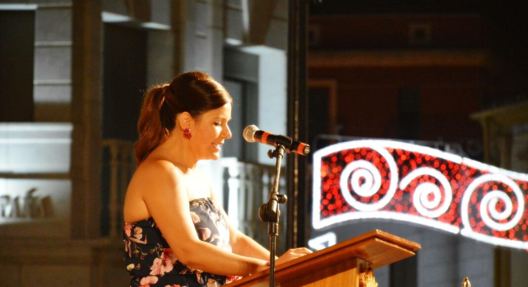 Elena Jiménez presentando la última Fiesta de la Vendimia que pudimos celebrar (2019)