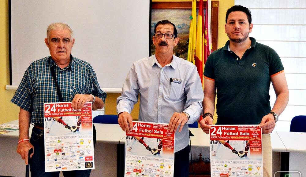 Esta tarde a las 16´00 h. en el pabellón San José arrancan las 24 horas de fútbol sala “Mente sana… cuerpo sano”, Memorial Candelas Lara, que organiza la Asociación de Alcohólicos Rehabilitados y Familiares de Tomelloso, AARFATOM. Se trata de la XIV edición de un evento deportivo importante en el calendario, un hecho que ha destacado el concejal de Deporte, Iván Rodrigo, durante la presentación del maratón.
