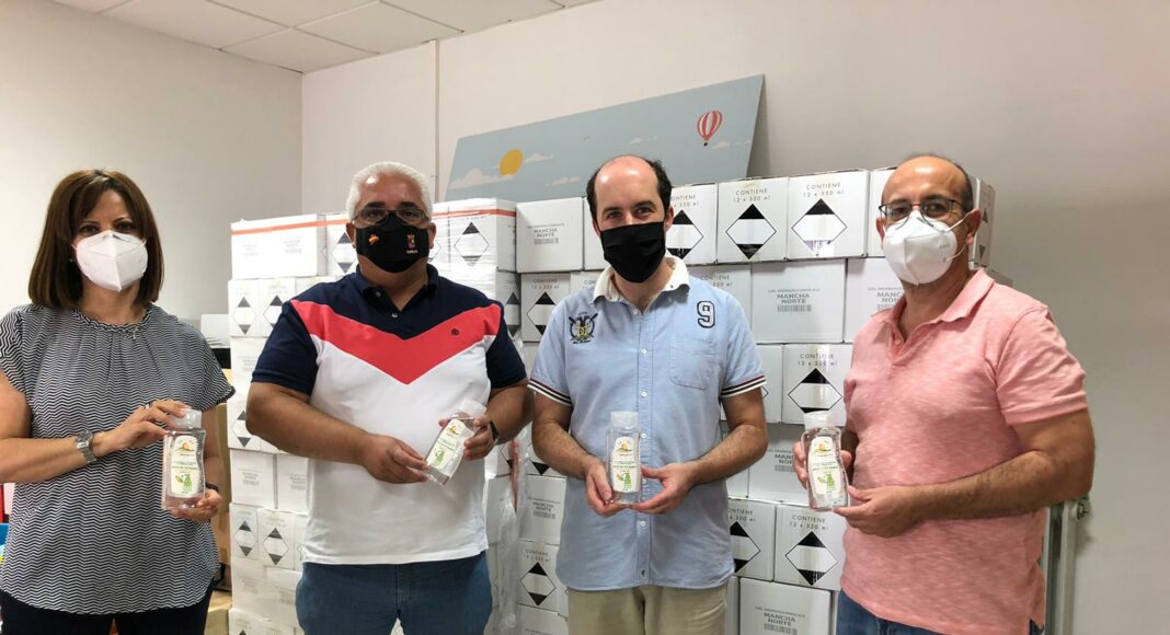 El presidente de Mancha Norte, Carlos Ortiz, ha entregado esta mañana al alcalde de Arenales de San Gregorio, Iván Olmedo, el lote de gel hidroalcohólico que será repartido en los comercios de su localidad. Se trata de la primera entrega de este producto, que anima en su etiqueta a apoyar a los comercios y restaurantes de los pueblos de toda la comarca, y que será repartido en los diferentes establecimientos de Campo de Criptana, Tomelloso, Socuéllamos, Pedro Muñoz, Alcázar de San Juan, Alameda de Cervera, Cinco Casas y Herencia.