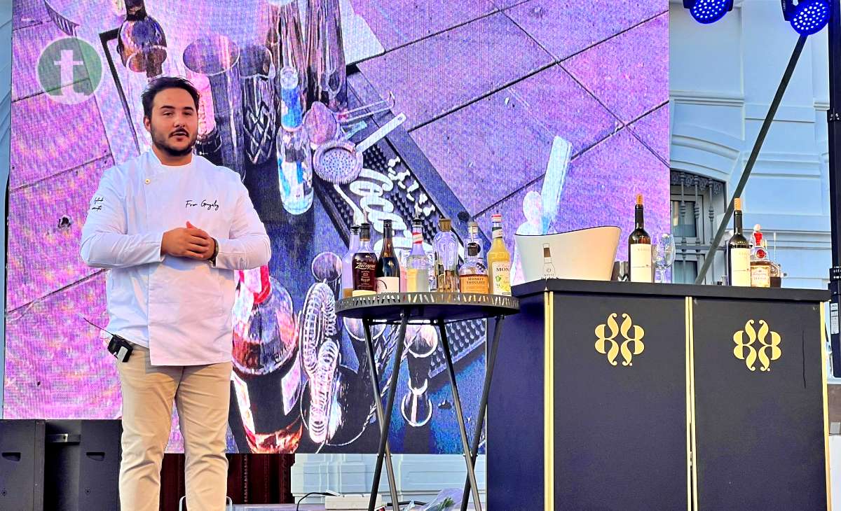 Este viernes por la tarde, la Plaza de España ha sido escenario de la masterclass de Fran González, un conocido bartender local que ha regresado a Tomelloso Sabor 2024 tras su participación en la edición del año pasado. Esta vez, González ha puesto el foco en los vinos de la zona, llevando el arte de la coctelería a un nuevo nivel con creaciones innovadoras que combinan ingredientes locales.