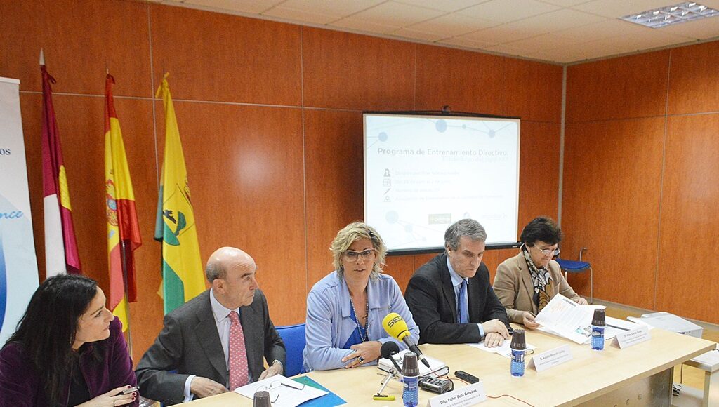 La Fundación Globalcaja Horizonte XXII presentó en la sede de la Asociación de Empresarios de la Comarca de Tomelloso (AECT) el Programa de Entrenamiento Directivo: el liderazgo del siglo XXII (PED). Esta acción formativa se lleva a cabo en colaboración con la AECT. Asistieron a la presentación el presidente y la directora general de la fundación, Rafael Torres Ugena y Carla Avilés Rogel; la presidenta de la AECT, Esther Belló González; y el secretario general de la Federación de Empresarios de Ciudad Real, FECIR, Agustín Miranda y Pilar Gómez-Acebo, directora académica del programa.