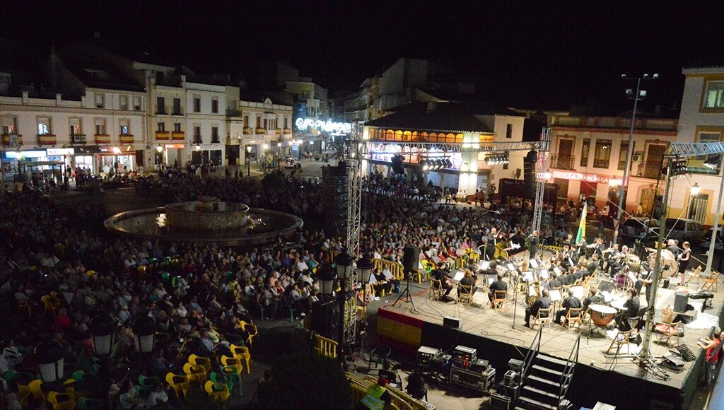 Con la plaza de España abarrotada la Unión Musical “Ciudad de Tomelloso” ofreció su tradicional Concierto de Feria y Fiestas bajo el título de “Mi gran noche”. La formación, dirigida por Agustín Pradillos, ofreció una selección musical de temas que se han convertido, por derecho propio, en clásicos de la cultura popular y que hicieron de las delicias del público. Afortunadamente las amenazas des lluvia y, por tanto, de suspensión del concierto no se cumplieron y la Unión Musical ofreció una gran noche a los aficionados.