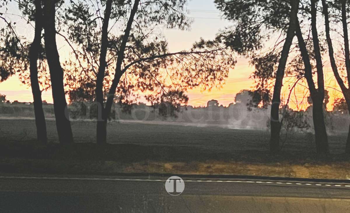 Un incendio declarado este sábado 4 de octubre sobre las 19:30 horas en una zona de rastrojos y pinos junto a la CM-400, frente a Bodegas Centro Españolas, obligó a cortar el carril de entrada a Tomelloso desde la autovía CM-42.