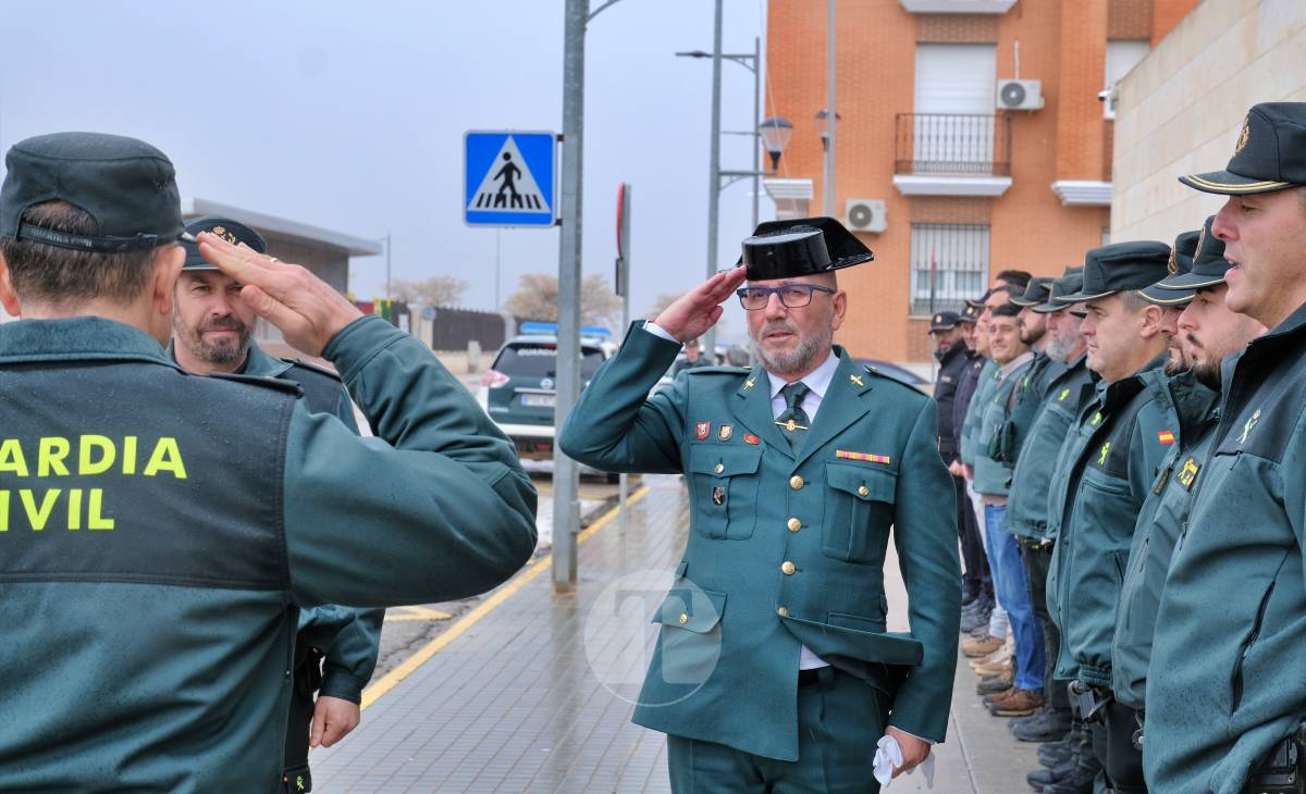 La bandera fue entregada por el capitán Antonio Villalta Sánchez, capitán de la IV Compañía de la Guardia Civil, acompañado por el teniente del puesto de Tomelloso, Francisco Jesús Muñoz Ligero. Un gesto solemne con el que se quiso poner en valor una trayectoria prolongada y constante dentro del cuerpo.