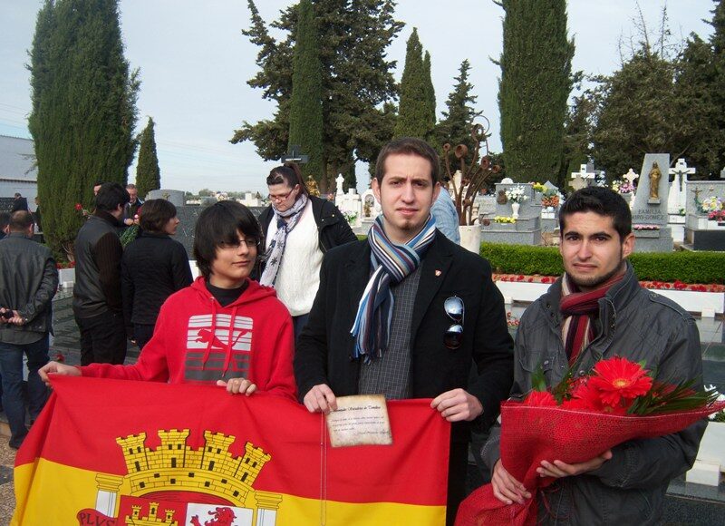 Las Juventudes Socialistas de Tomelloso, nos hacen llegar una nota de prensa en la que informan que acudieron este miércoles 1 de Mayo (Día del Trabajador) al cementerio de Alcázar de San Juan, ciudad donde se ubican los restos de los Tomelloseros que fueron asesinados hace ya más de 70 años por defender la libertad y la democracia como filosofías de vida para la nación, así como la República como modelo de estado. En dicho homenaje, la organización juvenil procedió a entregar una ofrenda a estos camaradas ya difuntos, un colgante con una placa republicana, al cual iba anillado un pequeño pergamino con la siguiente inscripción del poeta Miguel Hernández: «Aunque el otoño de la historia cubra vuestras tumbas con el aparente polvo del olvido, jamás renunciaremos ni al más viejo de nuestros sueños…». Para finalizar este homenaje, los militantes cantaron La Internacional Socialista al unísono ritmo de los allí presentes.juventudes-socialitas-tomelloso