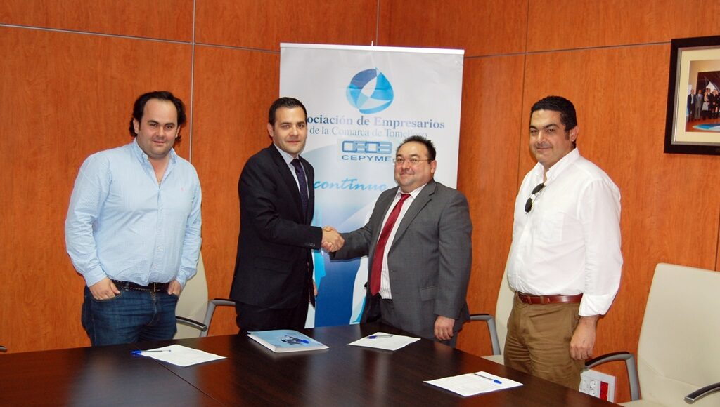 El acuerdo fue rubricado por los presidentes de ambas asociaciones, Manuel Carmona por la sectorial provincial y Antonio Sánchez, de la asociación tomellosera, en la sede de la AECT.