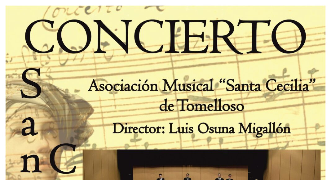 El próximo domingo 17 de noviembre, a las 12:30 horas, la Asociación Musical «Santa Cecilia» de Tomelloso dará su ya tradicional concierto de Santa Cecilia, patrona de la música y de los músicos, cuya onomástica se celebra el 22 de noviembre. El concierto, que tendrá lugar en el Teatro Municipal, se enmarca dentro de los diferentes actos que la asociación llevará a cabo durante este mes de noviembre.