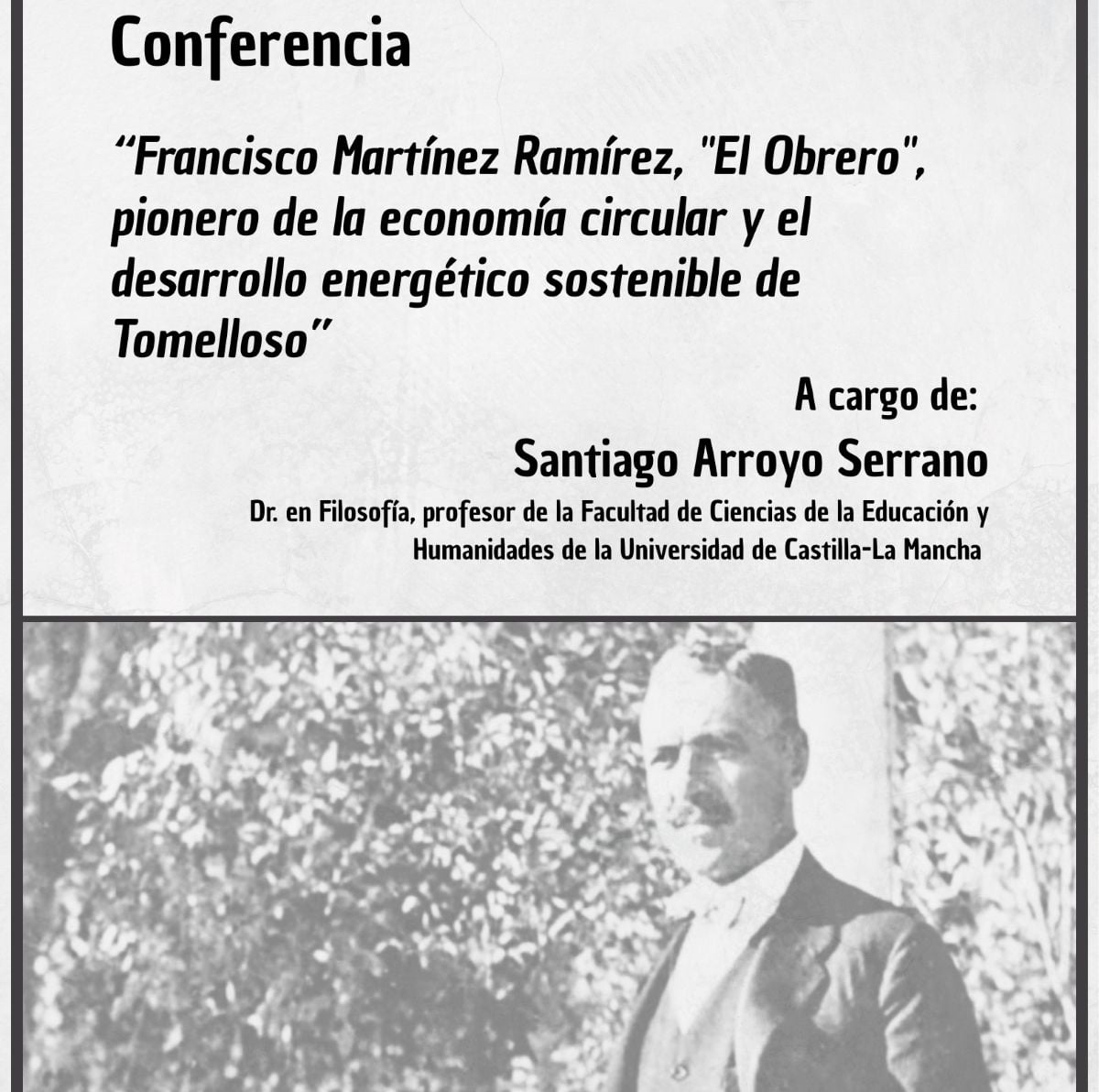En esta línea, la Biblioteca Municipal de Tomelloso acogerá una conferencia bajo el título “Francisco Martínez Ramírez, El Obrero, pionero de la economía circular y el desarrollo energético sostenible de Tomelloso”. Será a cargo de Santiago Arroyo Serrano, Dr. en Filosofía, profesor de la Facultad de Ciencias de la Educación y Humanidades de la Universidad de Castilla-La Mancha, el próximo miércoles 12 de noviembre de las 20:00 horas.