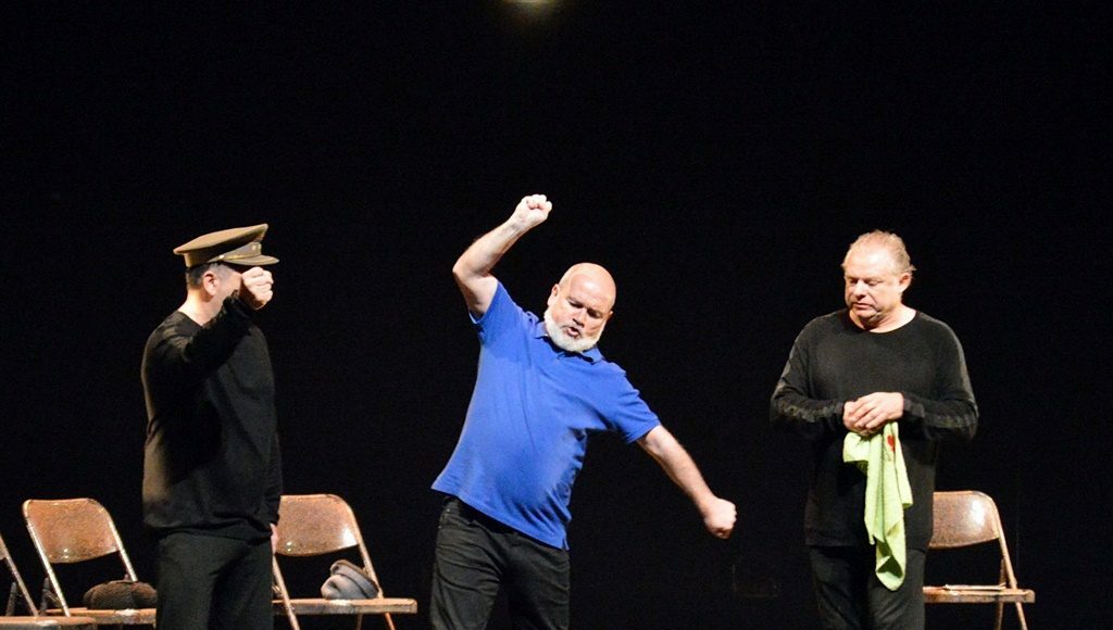 Un excelente y comprensivo profesor de teatro (Santiago Sánchez, director de la obra) imparte un cursillo de interpretación en el mismo Teatro Municipal de Tomelloso. Los asistentes al mismo, tan variopintos y arquetípicos como cabe suponer, vienen de la calle (entrando por el patio de butacas). Un militar fascista, un torero que quiere participar en un reality, un antiguo galán de cine, un chico tímido que tiene una madre posesiva, una enfermera de Donosti, un padre y un hijo, dos hermanas valencianas, un funerario… Todos ellos (y alguno más) interpretados por Carles Castilloy Carles Montoliu. Y una mujer de la limpieza que ama y siente el teatro (Elena Lombao).