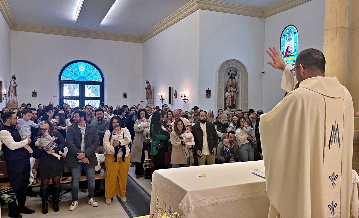 Tras la liturgia, el sacerdote procedió a la bendición de los niños con agua, para posteriormente realizar la presentación individual de cada uno de ellos por su nombre ante la imagen de la Virgen de las Viñas, uno de los momentos más emotivos del acto.