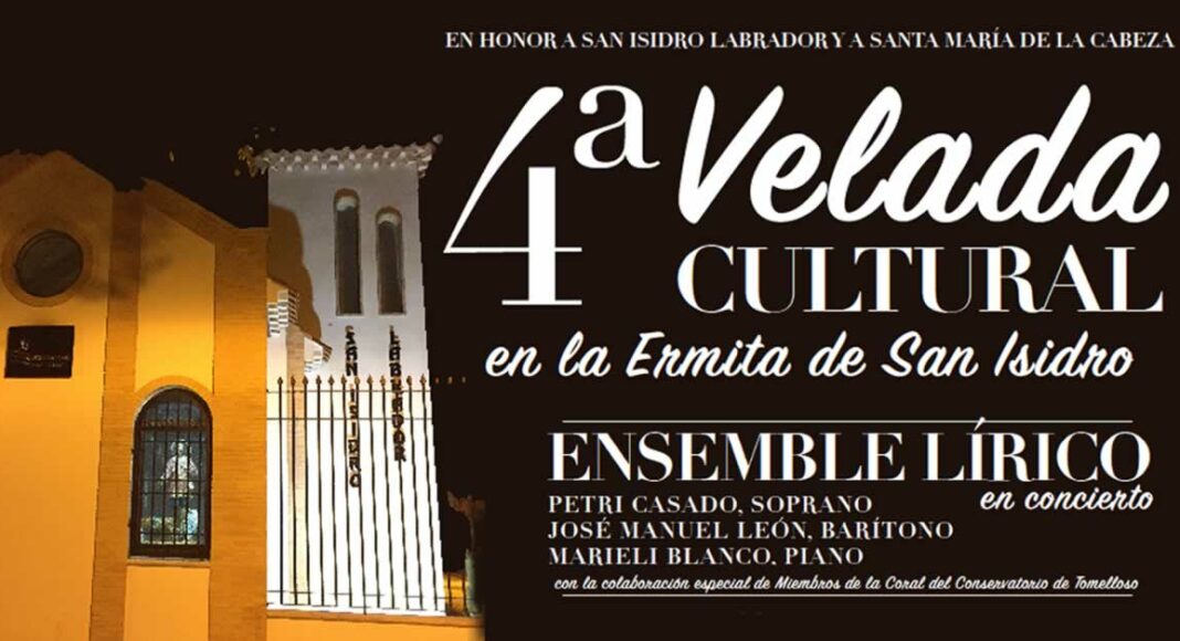 Un año más la Hermandad de San Isidro de Tomelloso vuelve a organizar su Velada Cultural, en honor a los patrones patrones, San Isidro Labrador y Santa María de la Cabeza. Una velada que se celebra en un marco incomparable, como es la Ermita de San Isidro, y que se ha convertido ya en un clásico de las noches veraniegas de Tomelloso. Este año celebra su cuarta edición, que no sería posible sin la colaboración del Ayuntamiento de Tomelloso.