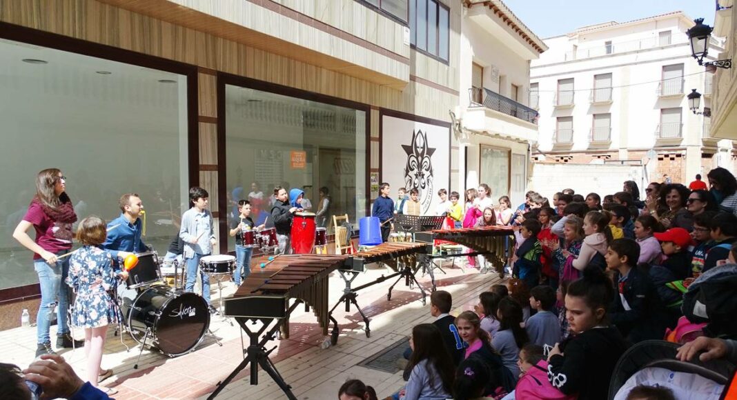 Por tercer año consecutivo el Conservatorio Municipal de Música ha sacado los instrumentos a la calle. Una actividad realizada por profesores y alumnos del Conservatorio, destinada a los alumnos de los centros escolares de la ciudad, que han acudido de forma masiva a los espacios del centro de Tomelloso donde han tocado las piezas seleccionadas para la ocasión con el objetivo de promocionar la música y el Conservatorio Municipal.