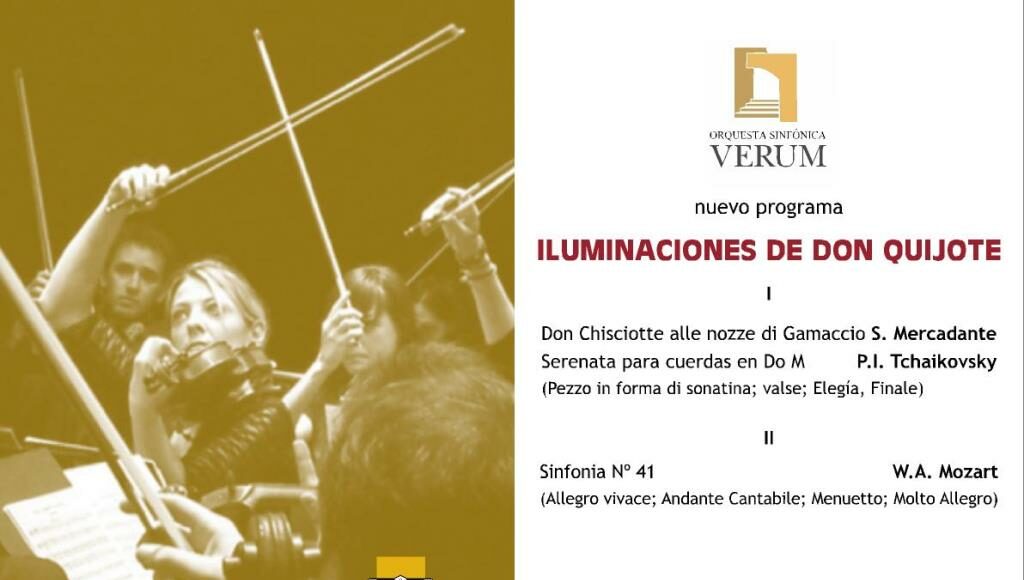 La Orquesta Sifónica Verum ofrecerá este sábado 26 de septiembre en el Teatro Municipal de Tomelloso un nuevo espectáculo musical. Se trata de “Iluminaciones de Don Quijote”, la aportación con la que pretende unirse Verum a la celebración del IV Centenario de la segunda parte de la obra de Cervantes.