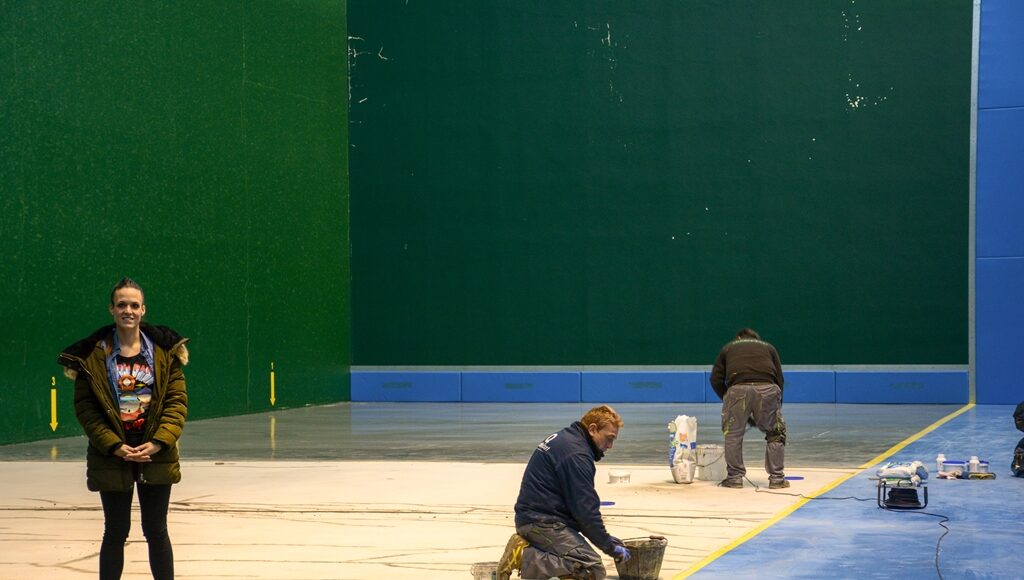 Según ha podido comprobar la concejala de Deporte, Laura Gallego, la próxima semana estará finalizada la reparación que se está llevando a cabo en una parte de la superficie del frontón ubicado en el pabellón cubierto de la Ciudad Deportiva. Se trata de la zona central de la superficie de juego, que se encontraba levantada por el uso y las tensiones sufridas en las juntas de dilatación. Esta intervención supondrá levantar toda la solera de unos 100 m² para sustituirla por una nueva solera de hormigón pulido con doble tratamiento y nuevas juntas de dilatación para absorber las tensiones producidas por los cambios de temperatura.