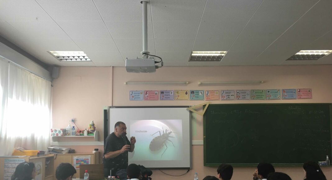 Los grupos de cuarto de educación primaria del CEIP Félix Grande se han convertido en un espacio de encuentro cercano entre el alumnado y el Científico D. Héctor Masuh (Doctor en Ciencias Químicas de la Universidad de Buenos Aires y trabajador experimentado en el manejo del Dengue en la India y Cuba).