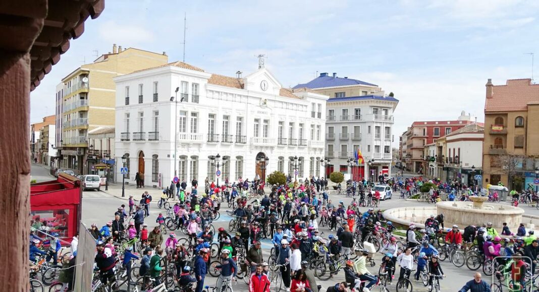 Este domingo cerca de dos mil ciclistas tomaban las calles de Tomelloso para celebrar el Día de la Bici. Tras el aplazamiento por cuestiones meteorológicas, como viene siendo costumbre la concentración y salida fue en la Plaza de España, a las 11:30h. La comitiva, abierta por los chicos y chicas del Club Triatlón Tomelloso, vestidos de naranja, recorrió la calle Don Víctor, paseo de San Isidro, avenida Don Antonio Huertas, carretera de Ossa de Montiel, avenida de Niort.