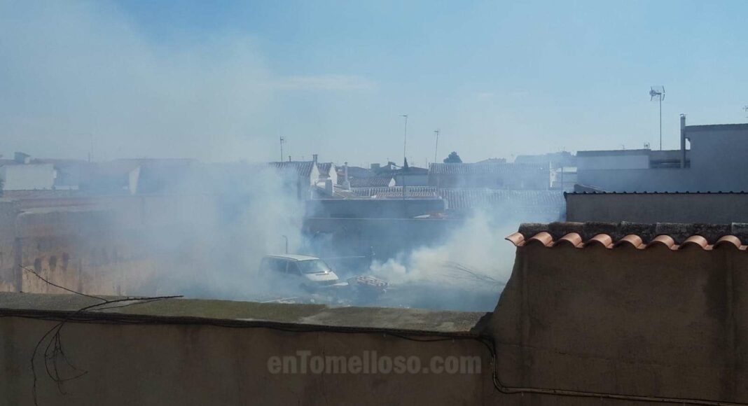 Los bomberos del Parque de Tomelloso han sofocado un incendio que se ha producido en un solar situado en la calle Manterola de la ciudad, en el que se ha visto afectado una furgoneta, así como algunos palets y diverso material.