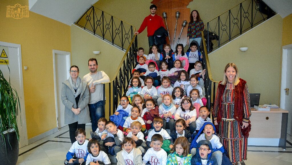 La alcaldesa de Tomelloso, Inmaculada Jiménez y el concejal de Cultura, Raúl Zatón, han recibido hoy en el ayuntamiento a un grupo de escolares de primero y segundo de primaria del colegio Doña Crisanta que, acompañados por sus profesores y por la propia alcaldesa, han visitado las instalaciones del Consistorio.