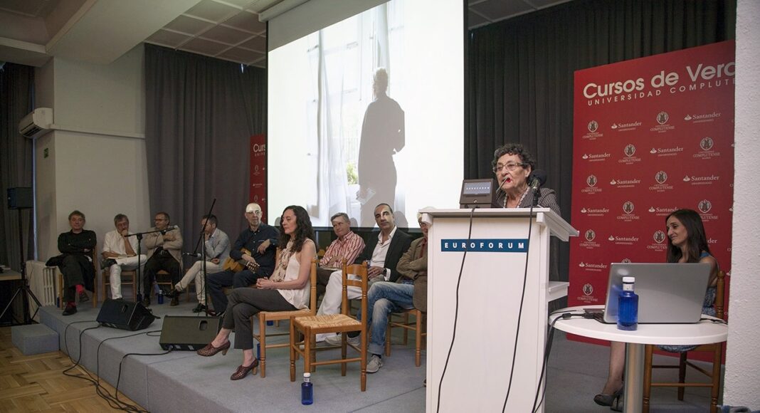 El acto, con una fotografía de fondo de Félix Grande, tomada hace unos años por Nacho Calonge en el Felipe II, sede de los Cursos de Verano y donde se celebró el homenaje, fue entrañable y las emociones ante su recuerdo estuvieron muy presentes.