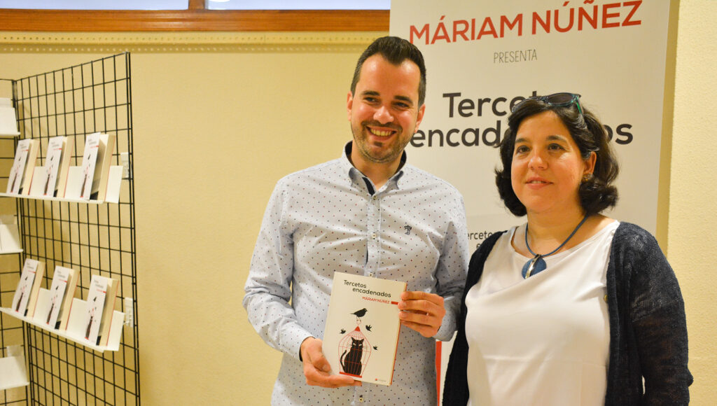 La profesora de lengua y literatura del IES Alto Guadiana, Máriam Nuñez, presentó ayer su primera novela “Tercetos encadenados”, un acto incluido en la “Primavera Lectora” de la Biblioteca que contó con la presencia del concejal de Cultura, Raúl Zatón. Se trata de una novela llena de referencias literarias, con un lenguaje rico, evocadoras descripciones y la capacidad de llegar a todo tipo de lectores.
