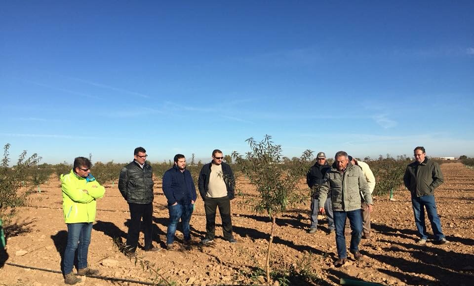 Junto a los talleres de poda, también se ha celebrado en Corral de Almaguer una charla sobre el cultivo del almendro impartida por Cristóbal Aránega, director general de Crisara, que estuvo acompañado en esta ocasión por Santiago Izquierdo, director general de la Coopertativa Frutos Secos Alcañiz, que presentó esta entidad y dio a conocer las ayudas para nuevas plantaciones de almendro.  Junto a Alejandro Torres y Sergio Arribas, de Prunotec, esta jornada también ha permitido conocer «in situ» el estado de algunas de las plantaciones de almendro y otros cultivos de la zona y asesorar sobre el terreno a los agricultores en temas de fertilización, tratamientos, plagas y enfermedades.