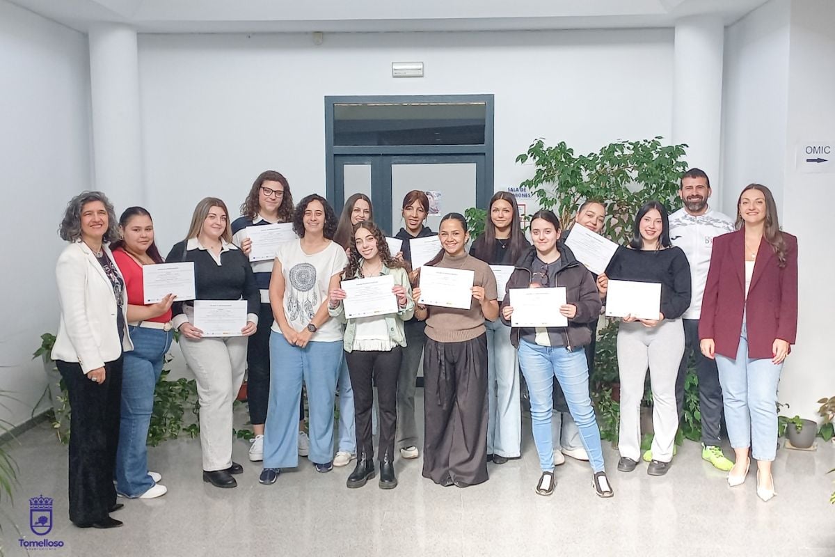 La concejala de Promoción Económica del Ayuntamiento de Tomelloso, Rocío Valentín, ha clausurado el curso “Aula Matinal, Comedor Escolar y Ludoteca”, una acción formativa desarrollada entre el 24 de febrero y el 17 de abril, destinada a mejorar la cualificación profesional de sus participantes en un sector con importantes salidas laborales. En total, quince alumnas han completado el itinerario formativo, orientado a reforzar sus competencias personales y profesionales para facilitar su acceso al mercado de trabajo.