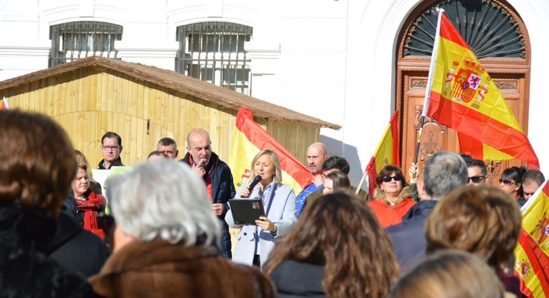 En esta concentración, a la que se ha sumado VOX, aunque han recalcado que era una convocatoria abierta al resto de los partidos, ha procedido a la lectura del manifiesto la concejala de VOX en Tomelloso, Ana María Valero.