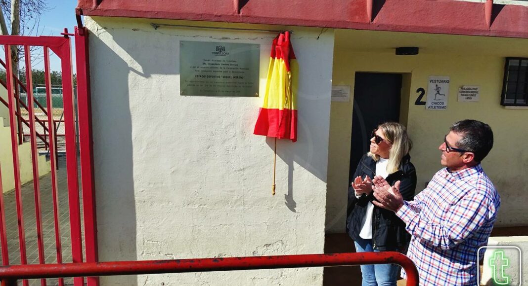 La alcaldesa de Tomelloso, Inmaculada Jiménez, y el hermano del homenajeado, José Antonio Moreno, descubrieron la placa en reconocimiento “por su trayectoria profesional ligada al fútbol, además de ser uno de los mejores deportistas de Tomelloso”, según recoge la placa. Jiménez, visiblemente emocionada, recordó el gran cariño que siente por la familia, monstrándose muy satisfecha de hacer realidad una propuesta de numerosos colectivos de Tomelloso para que el recuerdo de Miguel Moreno permanezca vivo y para que sirva como ejemplo de los muchos deportistas que pasan por esta instalación.