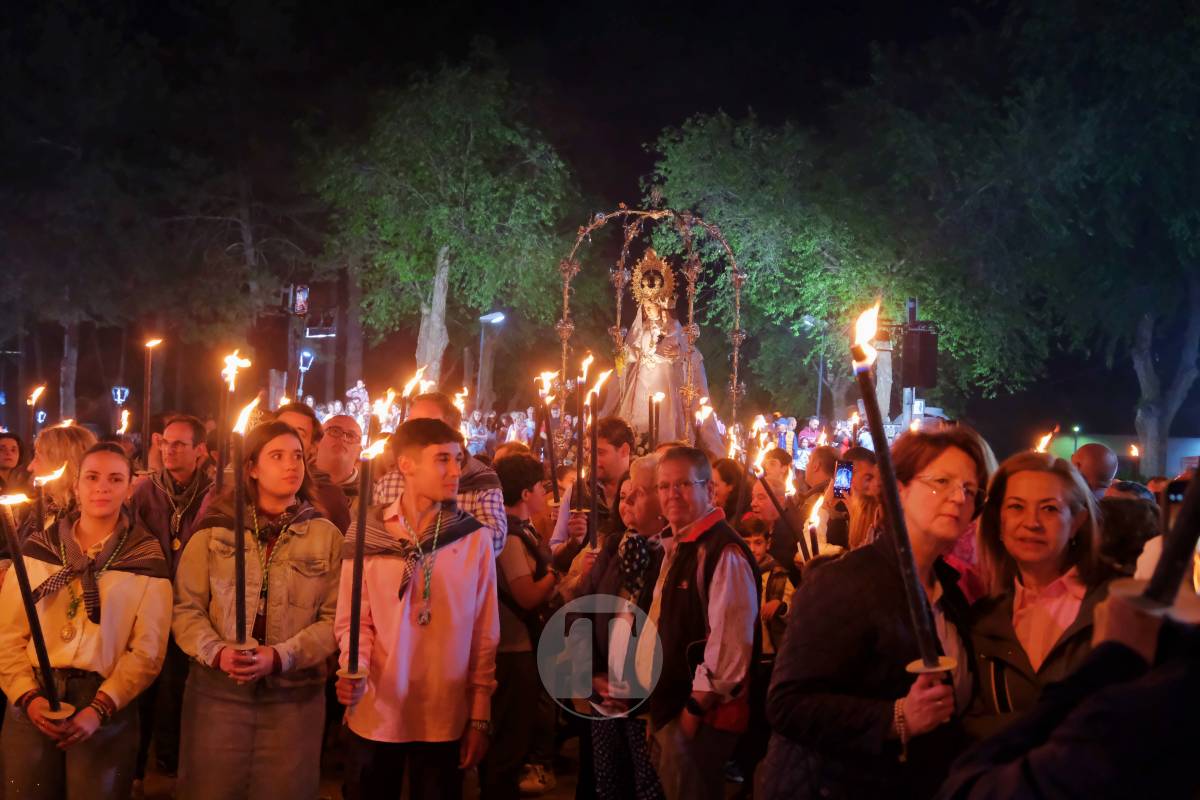 La imagen de la Patrona salió a las 22:00 horas desde su ermita, iniciando un recorrido iluminado por las antorchas y acompañado por el rezo del Santo Rosario. El santuario volvió a convertirse en el epicentro de la celebración, en una noche de gran recogimiento y participación.