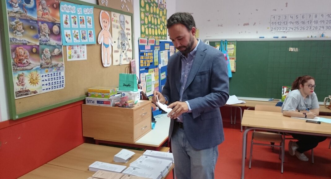 Continúa la ronda de votos por parte de los principales representantes políticos de Tomelloso, y esta vez le toca el turno al candidato a la Alcaldía por el Partido Popular, Javier Navarro, quien se ha trasladado hasta el colegio correspondiente para ejercer su derecho a voto.