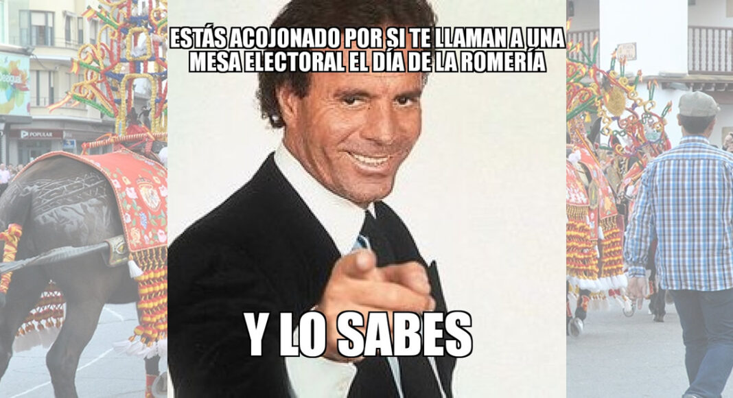 Los romeros tendrán que ir al colegio electoral, antes o después de la pertinente visita a Pinilla, si quieren ejercer su derecho a voto. Será una faena para la persona que salga elegida para formar parte de una mesa electoral, y, tal vez, los partidos locales tendrán más problemas para conseguir interventores y apoderados para cubrir todos los colegios.