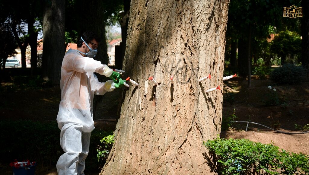 Por tercer año consecutivo y como consecuencia de los buenos resultados obtenidos, el Área de Medio Ambiente ha programado un nuevo tratamiento de endoterapia para luchar contra las plagas en las zonas verdes de Tomelloso. En esta ocasión se ha actuado en la plaza de Málaga, avenida Juan Carlos I, calle Oriente hasta el polideportivo Codetosa, Carrera de San Jerónimo, CRPSL, parque de la Constitución, Centro de Barrio San José y calle Asunción Cepeda. En unas semanas se volverá a trabajar con esta técnica en la avenida Don Antonio Huertas completa.