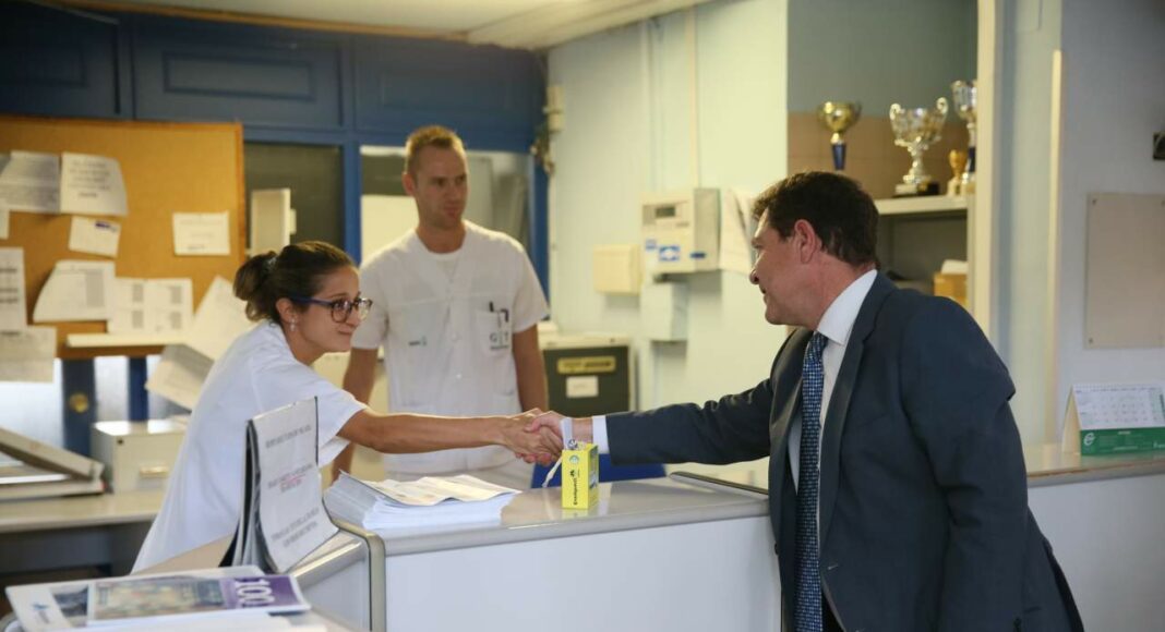 El presidente de Castilla-La Mancha se ha interesado por la marcha de las obras durante la visita que ha realizado este jueves al Centro de Salud I de Tomelloso, donde ha saludado a los trabajadores y ha conocido de primera mano las obras iniciadas el mismo día del incidente.