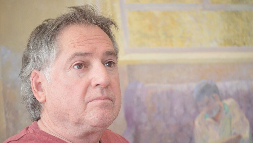 Ahora el artista ha retomado un bodegón con sandías, grande y sobrecogedor que tuvo que dejar a finales del verano pasado «porque se acabaron las sandías». Lo ha colocado otra vez en el caballete, dice, porque ya hay otra vez.