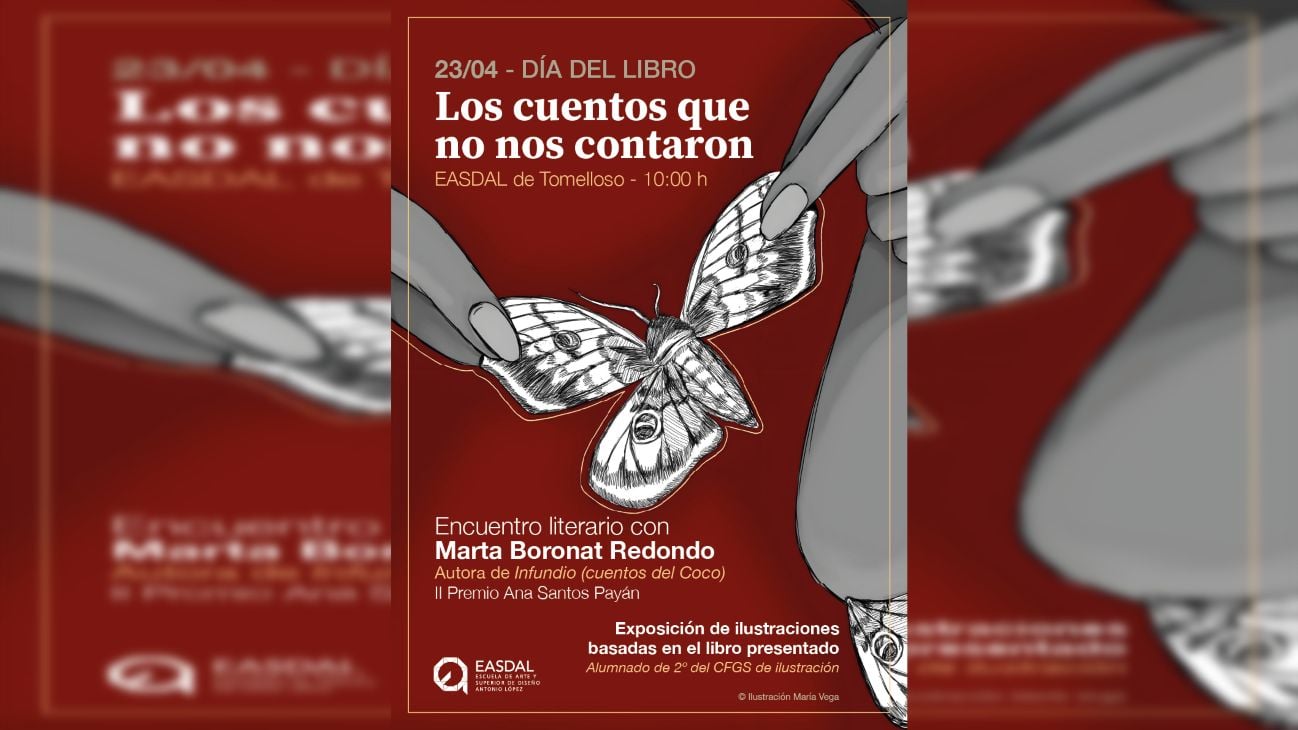 La Escuela de Arte y Superior de Diseño Antonio López (EASDAL) de Tomelloso acogerá el próximo 23 de abril a las 10:00 horas el encuentro Los cuentos que no nos contaron, una actividad organizada con motivo del Día del Libro. El evento reunirá a la escritora Marta Boronat Redondo, ex alumna del centro y autora de Infundio (cuentos del Coco), obra galardonada con el II Premio Ana Santos Payán para Proyectos de Libros de Poesía.
