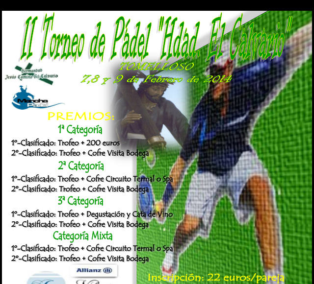 Los días 7,8 y 9 de febrero se celebrará en las instalaciones de Manchapadel Tomelloso el Segundo Torneo de Pádel de la Hermandad Jesús Camino del Calvario.