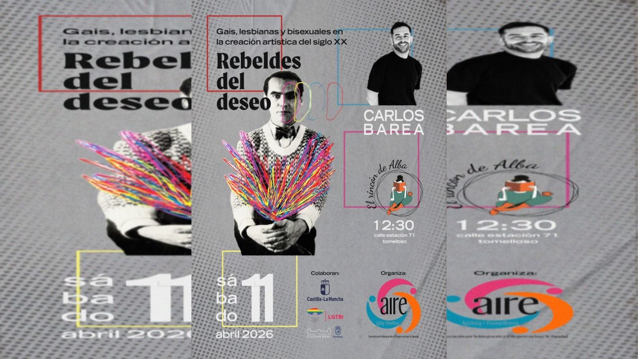 El espacio cultural El Rincón de Alba de Tomelloso acogerá el próximo sábado a las 12:30 horas la presentación del libro “Rebeldes del deseo”, escrito por Carlos Barea. La obra, que se centra en la memoria de artistas y creadores LGTBI, propone un recorrido por la vida y obra de figuras relevantes de la literatura, la música, el cine y las artes plásticas, muchas de las cuales tuvieron que ocultar su orientación sexual o afrontar las consecuencias de vivirla con libertad en contextos de represión y prejuicio social.