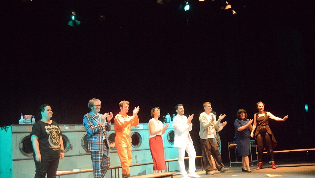 El escenario —atrevido y sorprendente como toda la obra— nos sitúa en una lavandería. Esperanza. Es el Purgatorio, el lugar donde las almas lavan sus culpas para poder ir al cielo. Además de por los ingenios de limpieza lo hacen mediante juicios que preside la Honorable Littlefield, una dominatrix a la que interpreta Nuria Moraga. Una implacable y ambiciosa abogada irlandesa, Fabiana Aziza Cunninghan, a quien da vida Nieves Jiménez quiere retomar la causa de Judas Iscariote y mandarlo al cielo. Se enfrenta a un juez árabe, Ysef El-Flayumy, de quien hace Carlos Torres, empeñado en condenar a las llamas eternas al zelote.