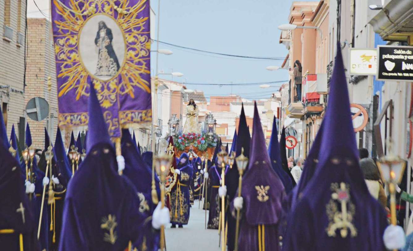 Acompañando a su imagen titular, un gran número de penitentes ataviados de morado terciopelo, la Hermandad de Jesús de Medinaceli, tras la que desfilaban tantos o más devotos de la imagen.