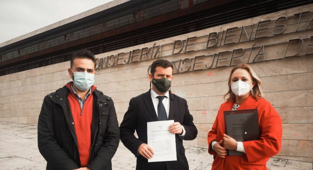 El diputado nacional de VOX por Ciudad Real, Ricardo Chamorro, la portavoz de VOX en el Ayuntamiento de Tomelloso, Ana María Valero y el concejal por este Ayuntamiento Luis Miguel Valero se han personado esta mañana en las instalaciones de la Consejería de Sanidad de CLM para denunciar las graves carencias de recursos técnicos y humanos del Hospital de Tomelloso y de la Atención Primaria del Área de influencia sanitaria de este Hospital.